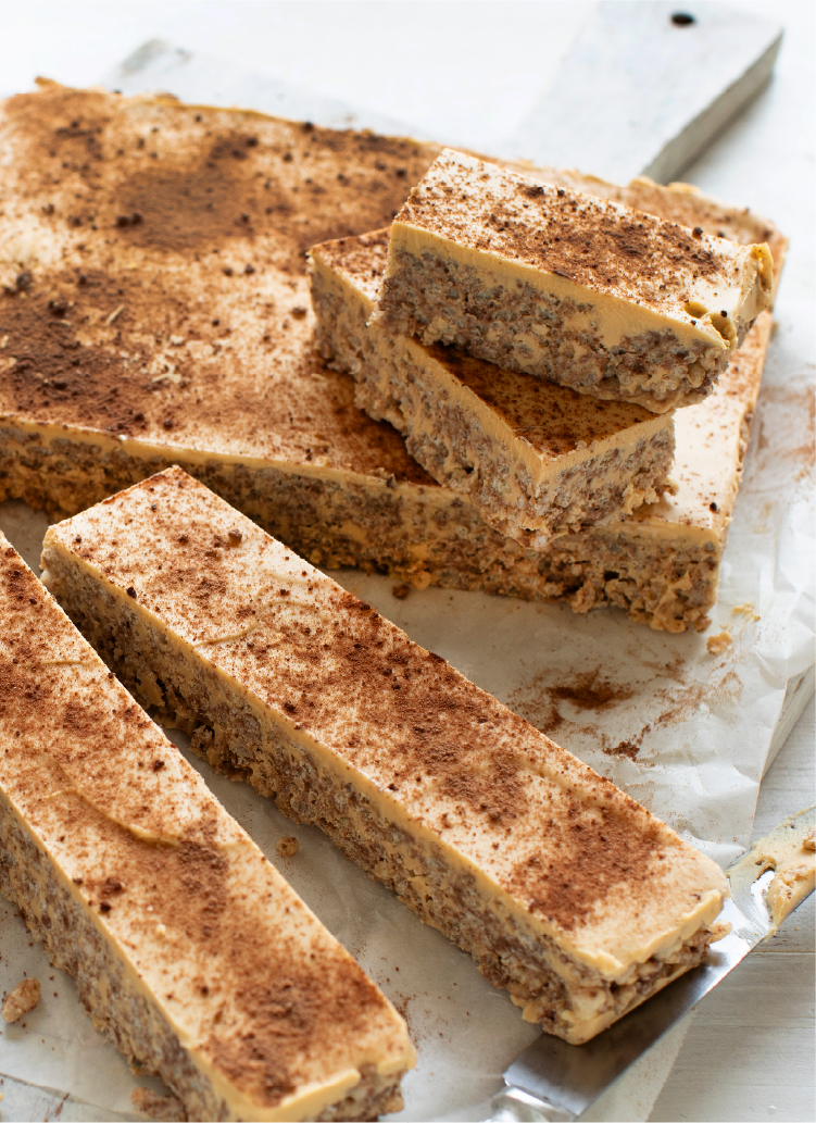 Pour into a greased and lined 20x30cm slice tin and firmly press into the tin with a spatula or flat-bottomed glass. Refrigerate until set.