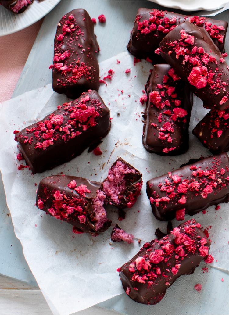 A creamy coconut and raspberry filling covered in rich dark chocolate – these no-bake bars are pure bliss. Simple to make, perfectly balanced, and the ideal sweet treat for any time of day.